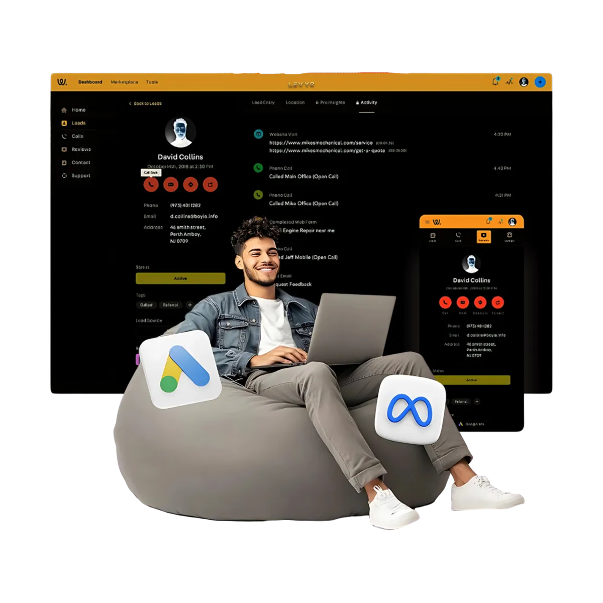 Short Answer Yes. Levyr is a machine, but it still requires gas to run efficiently. Your leads, contacts, and clients are what power it. Our sister company https://www.threeclickads.com/home can provide leads and integrates seamlessly with Levyr.