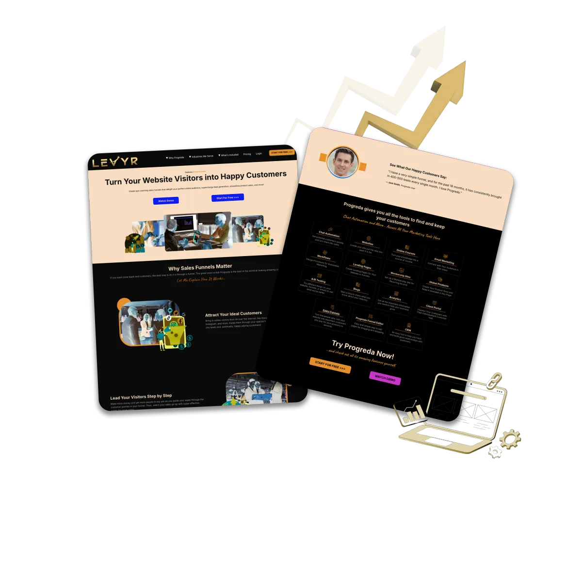 Levyr empowers entrepreneurs to capture leads to automate follow-ups and close more deals and scale their business off from one powerful all-in-one marketing and sales-platform with a 7-day trial and no contracts